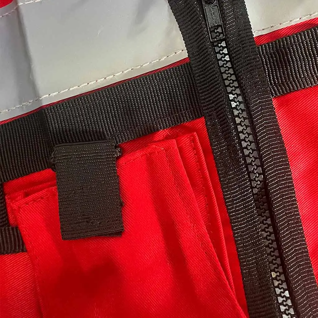 Incluye cierre de seguridad tipo zipper negro de 40 cm, bies de polipropileno de alta resistencia y hebillas de ajuste laterales que permiten un ajuste firme y personalizado.