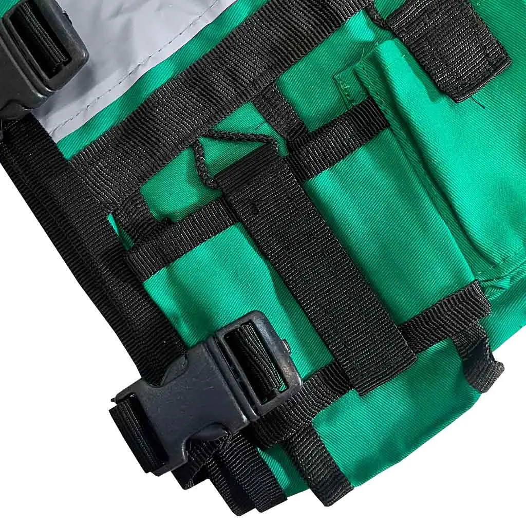 Incluye cierre de seguridad tipo zipper negro de 40 cm, bies de polipropileno de alta resistencia y hebillas de ajuste laterales que permiten un ajuste firme y personalizado.