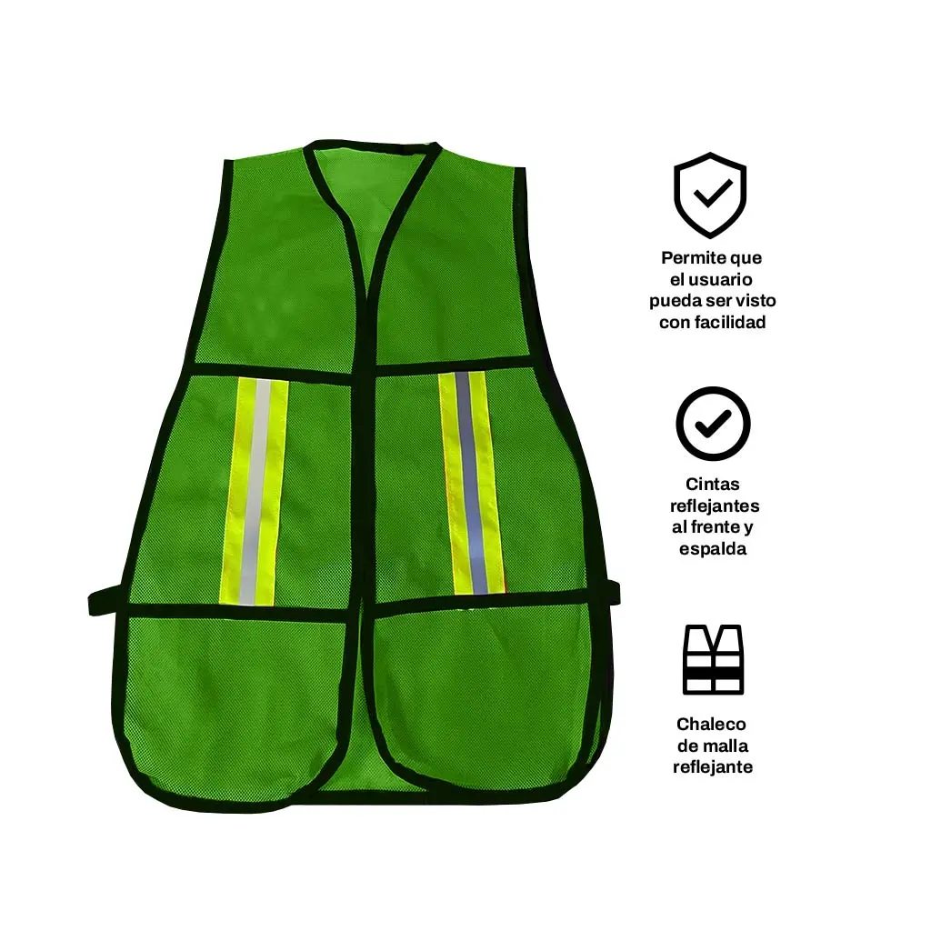Este chaleco fluorescente está fabricado con tejido de malla ligera y transpirable, ideal para jornadas largas o climas calurosos. Su diseño en colores brillantes (amarillo neón, verde fosforescente o naranja) y sus bandas reflectantes de alta visibilidad permiten ser visto fácilmente tanto de día como de noche, reduciendo el riesgo de accidentes.