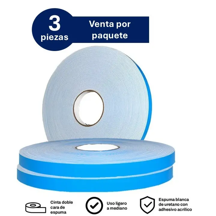 La cinta doble capa de espuma es una solución adhesiva de alto desempeño, diseñada para ofrecer una unión firme, duradera y adaptable a distintas superficies. Su estructura combina una base de espuma con adhesivo en ambos lados, proporcionando excelente resistencia a impactos, vibraciones y cambios de temperatura.