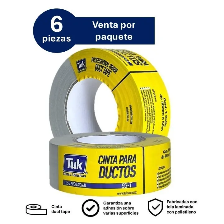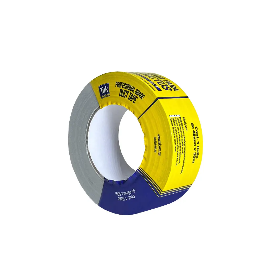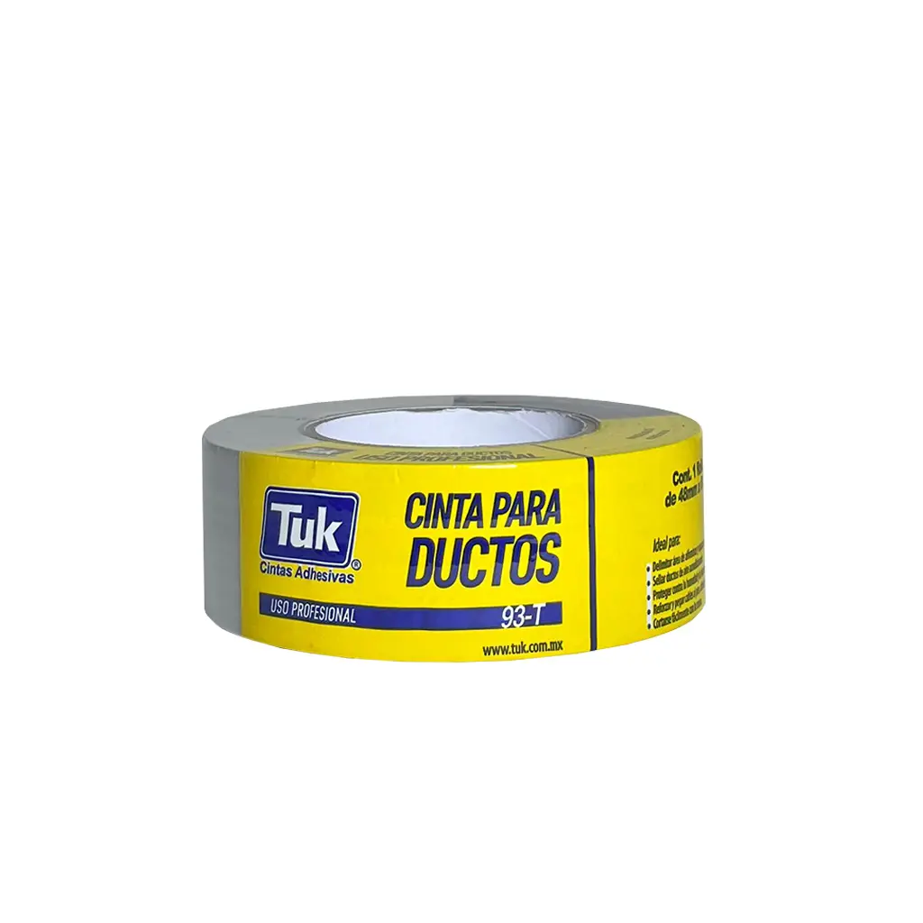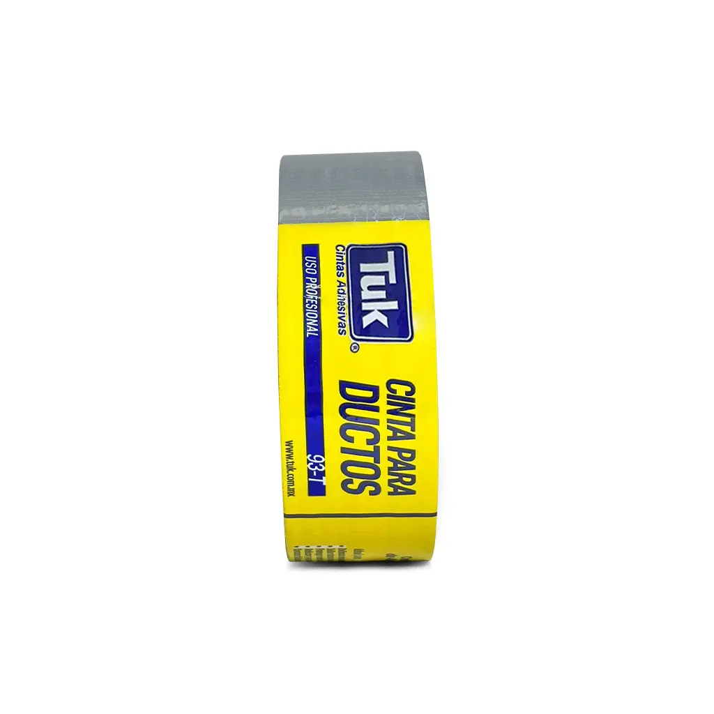 La Cinta Duct Tape TUK® 93T es una cinta de tela recubierta con polietileno y adhesivo de caucho natural, diseñada para brindar alta resistencia, flexibilidad y excelente adherencia en múltiples superficies. Su estructura reforzada permite un sellado fuerte, resistente al desgarre y a la humedad, ideal para uso industrial, automotriz, eléctrico y general.